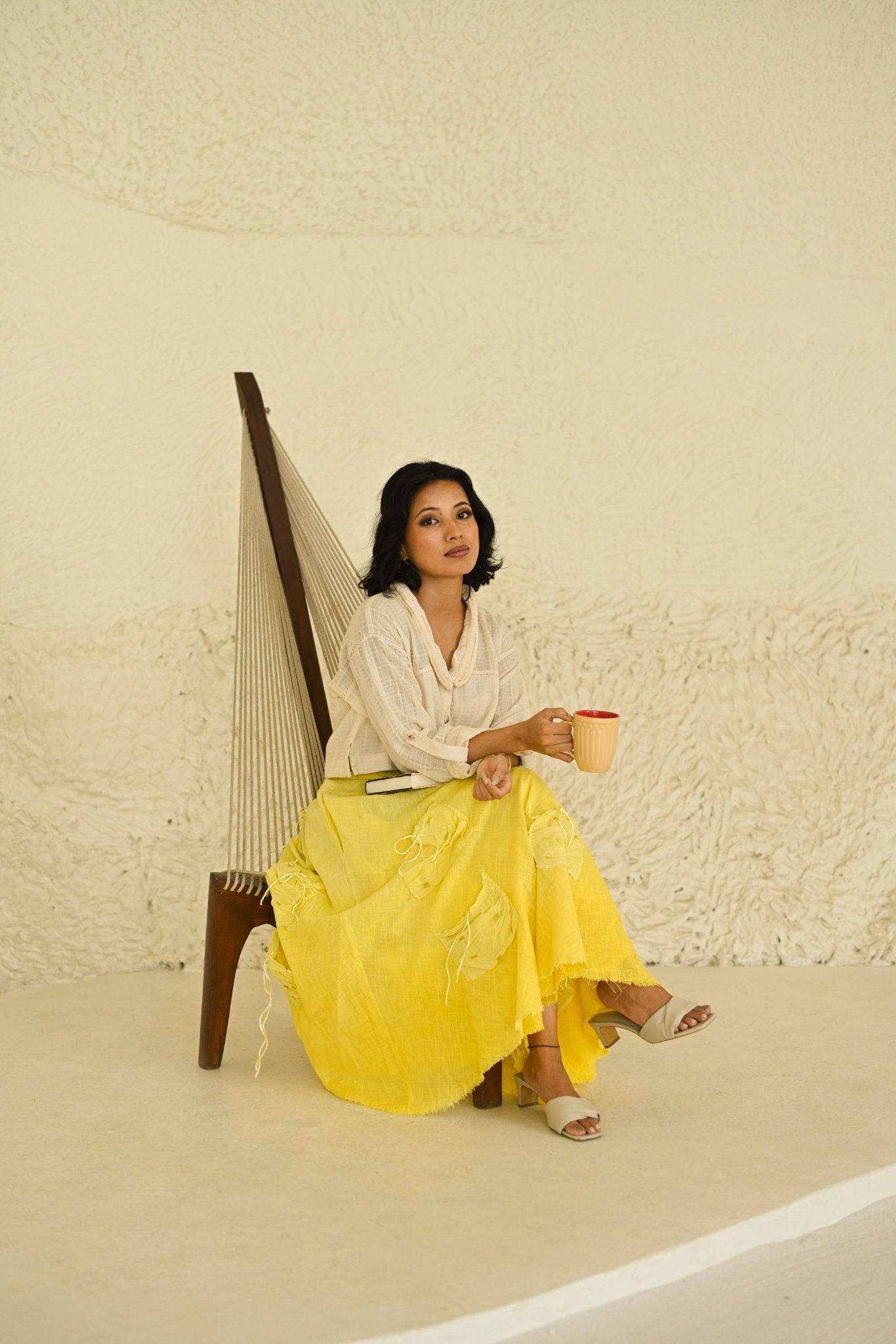 Effortless elegance meets meticulous craftsmanship. Crafted from fine linen in ivory, charcoal black, lemon drop yellow, and grey, this blazer features intricate hand and machine embroidery inspired by Kintsugi art. A perfect blend of timeless charm and modern sensibility.