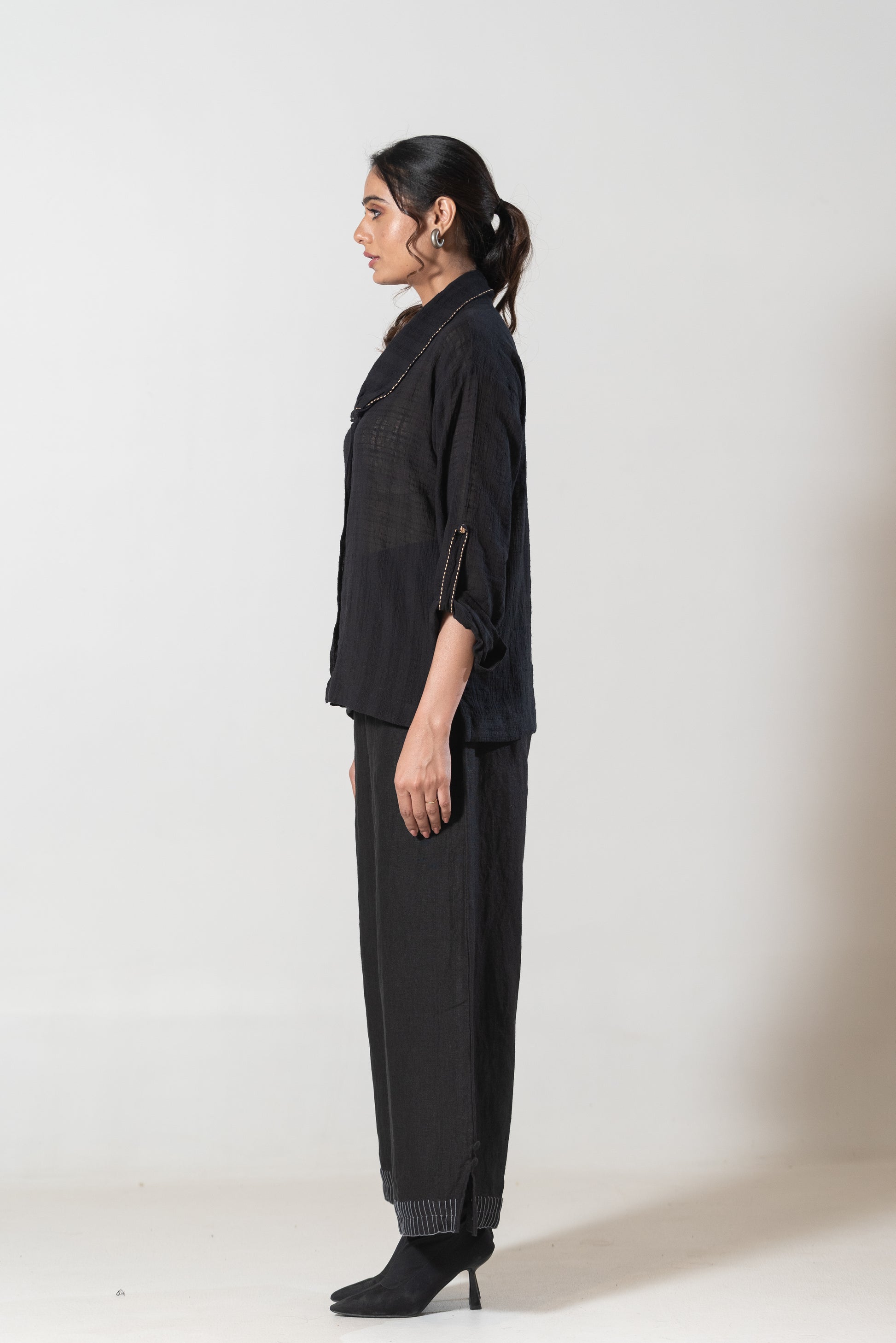 A cute long Shirt without lining with hand embroidered buttons and Peter Pan style collar with running kantha stitch.
