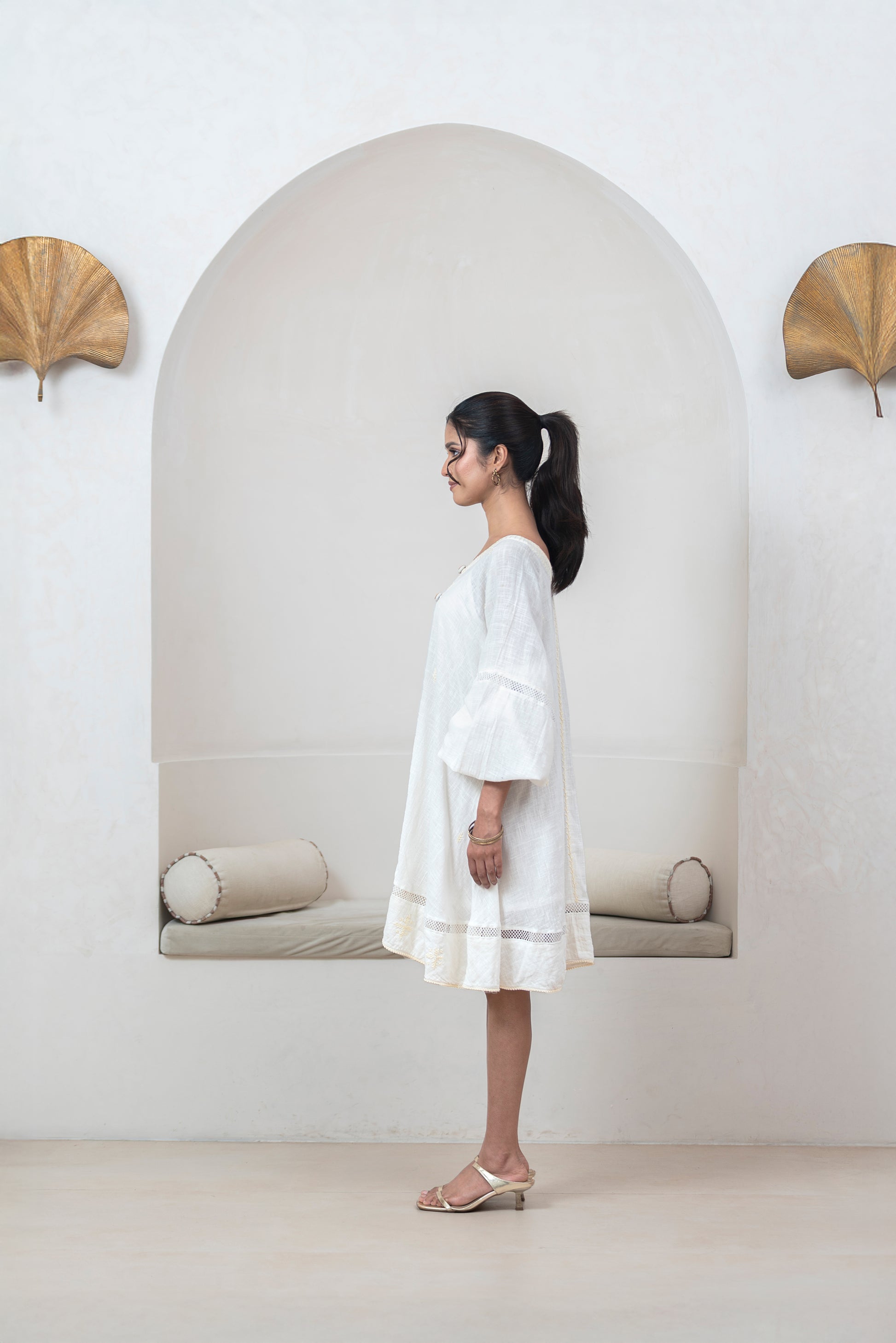 Ivory Slub Cotton Anti-fit Asymmetrical Dress