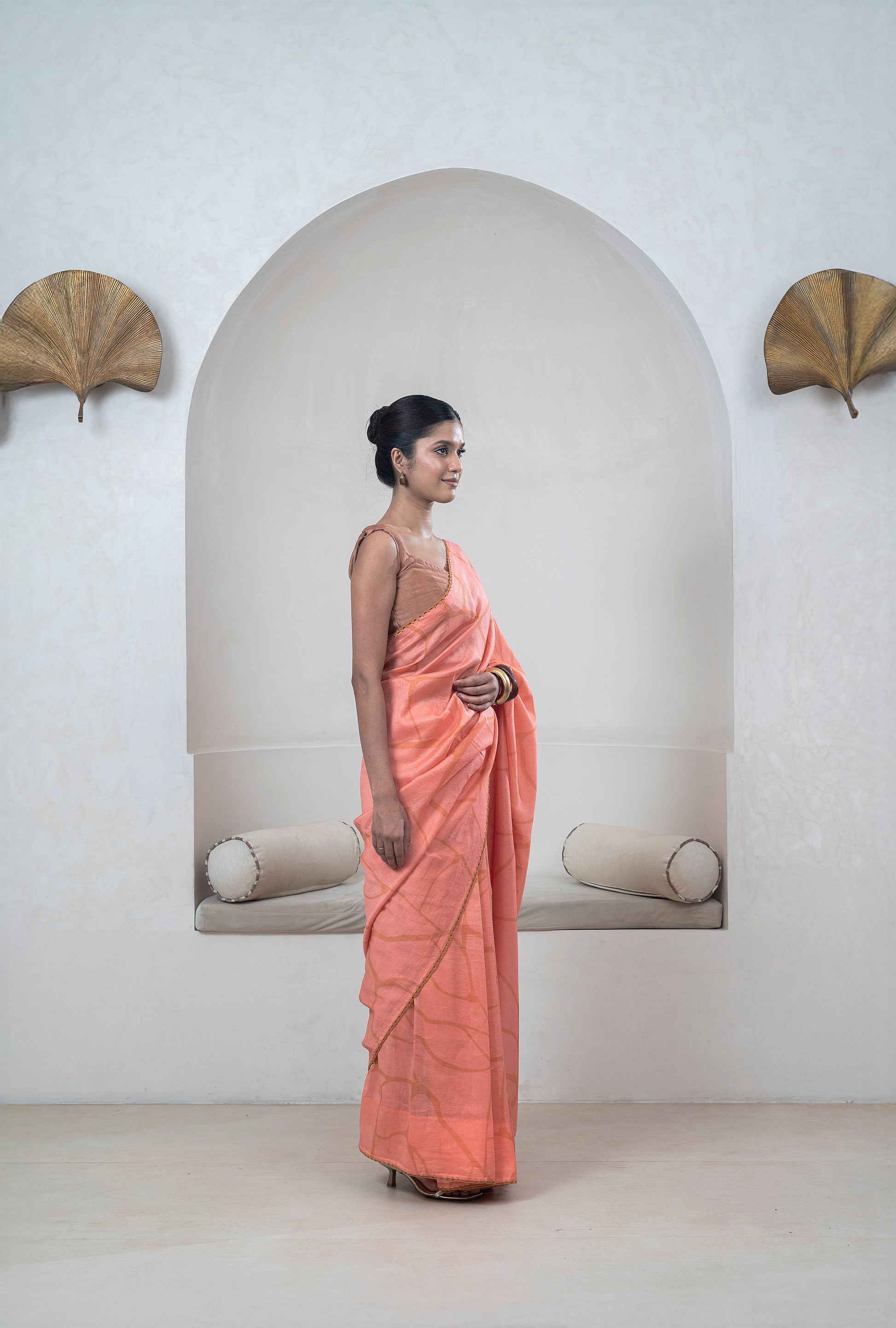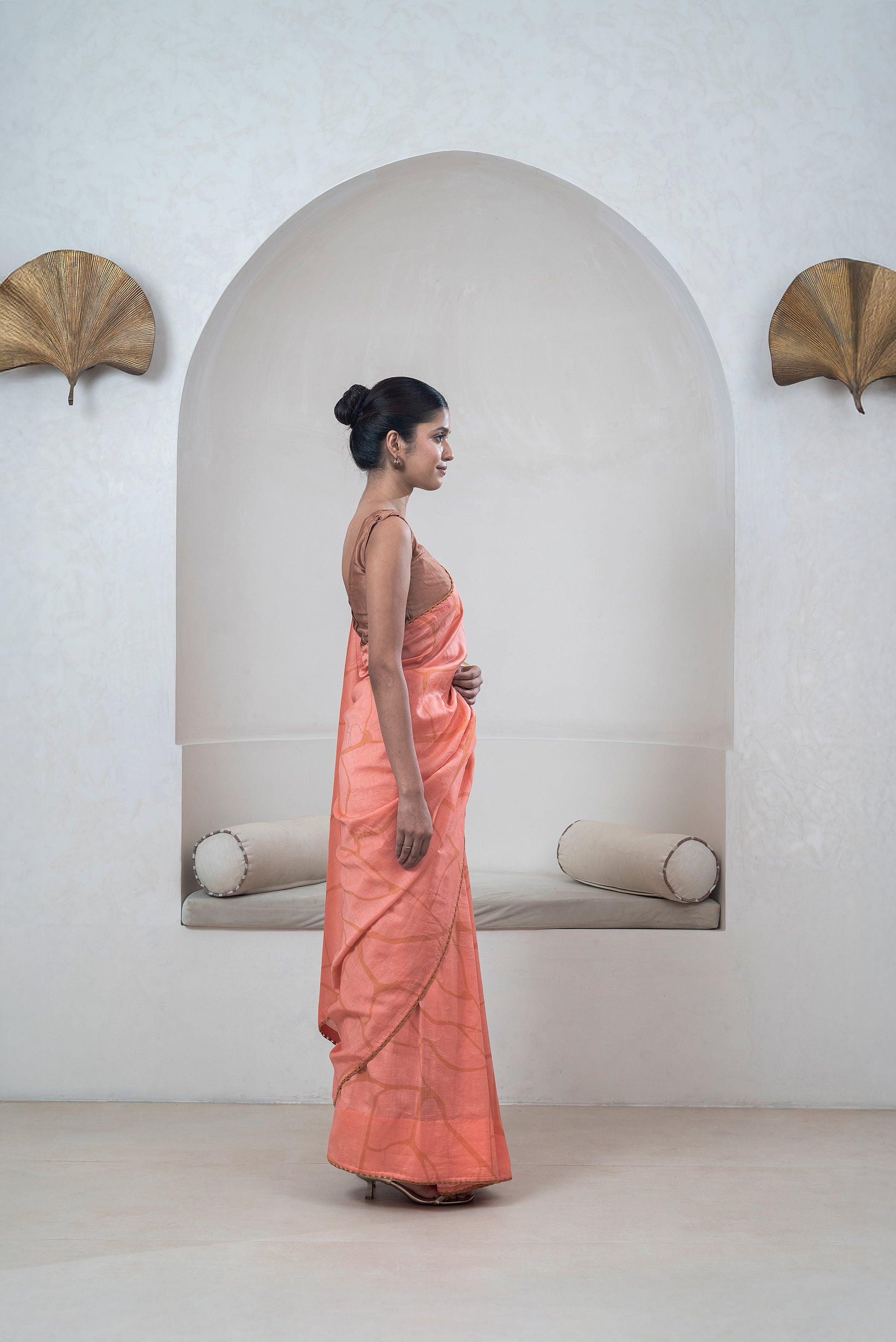 Dark Peach Chanderi Silk Sari